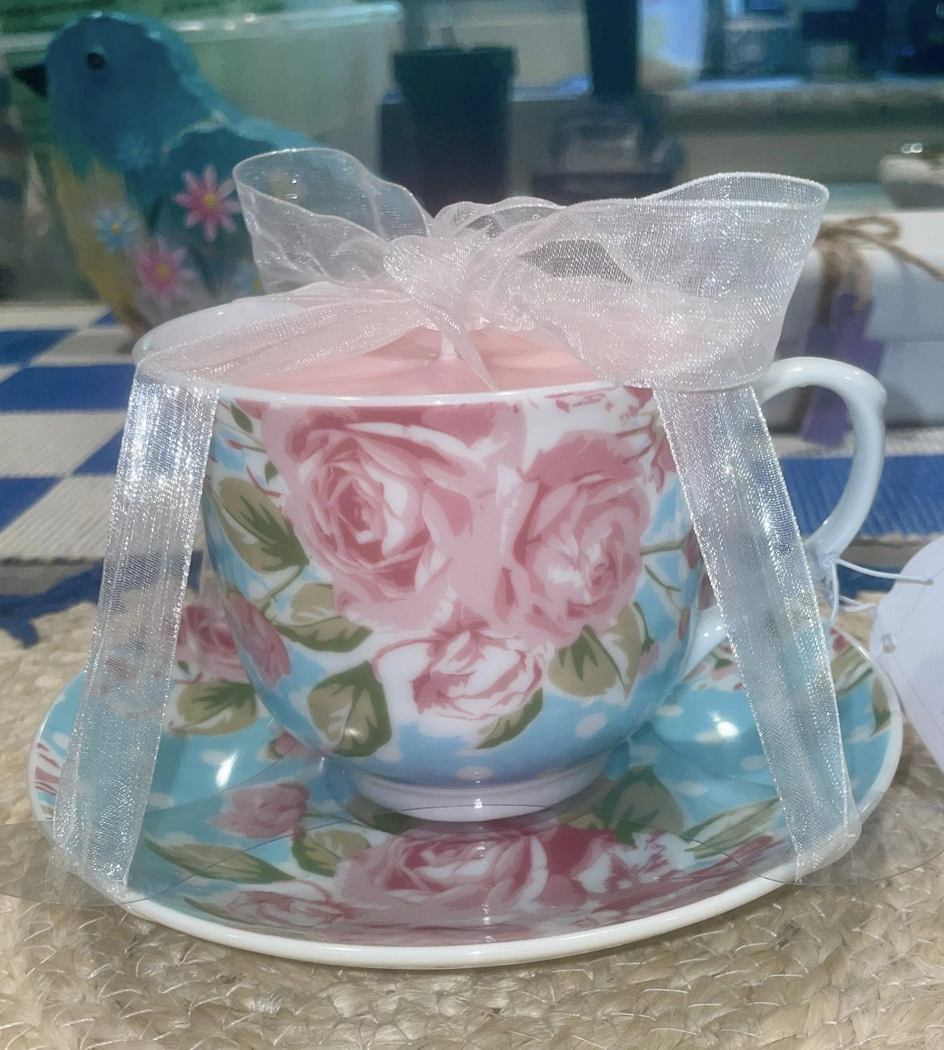 Perfect as a gift. These Tea cup candles are hand poured and the perfect touch for any room.